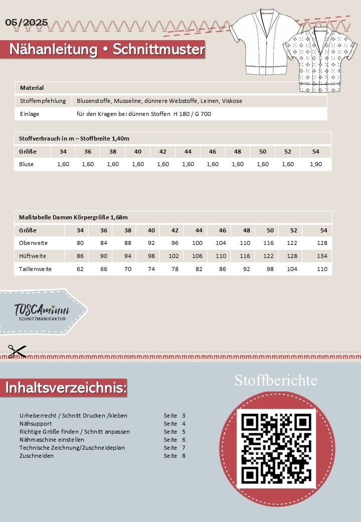E-Book TOSCAminni Schnittmanufaktur Blouse Gilla Ladies, german Item nr.: TOMI-77