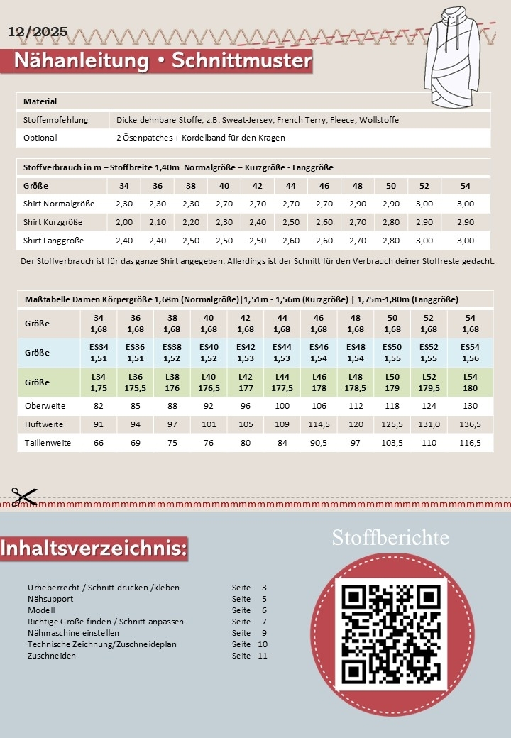 This sewing pattern is in German. It is in the format of the file to download to your computer before printing and assembling it yourself!